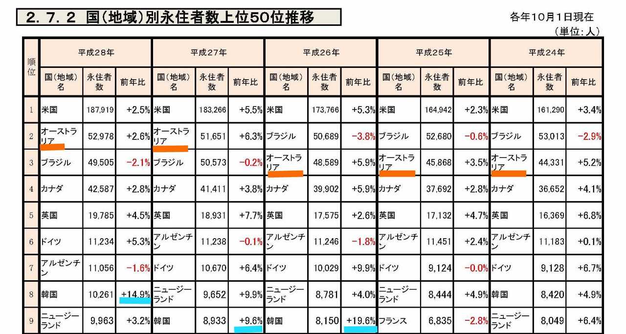 ・永住者数ランキングで、オーストラリアは二位に浮上する